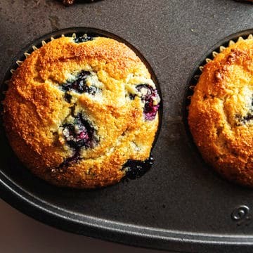 Read the blog and original recipe at https://jenniferbanz.com/keto-blueberry-muffins#recipe. Download our printable version of the recipe here: Keto Blueberry Muffins