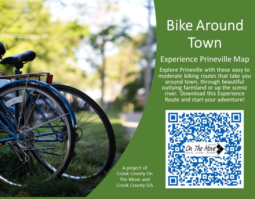 Your goal to #Keep Moving will be more fun if you explore our beautiful community with these Interactive Experience Maps developed in partnership with Crook County GIS. Click on the buttons below to access the corresponding map: