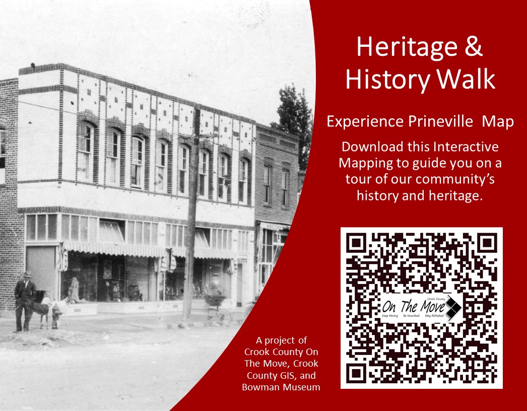 - Experience Prineville Maps – Interactive Maps with walking and biking routes to explore Prineville’s Art, History and our beautiful town!
